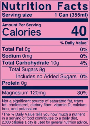 Carbonated Water, Fruit Juices From Concentrate (16%) (Grape, Strawberry, Sour Cherry (1%)), Erythritol, Magnesium Citrate, Citric Acid, Natural Flavors And Botanical Extracts (Cherry, Blueberry, Lemon Balm, Chamomile), Stevia, Lion’s Mane Extract, KSM-66 Ashwagandha Root Extract, L-Theanine